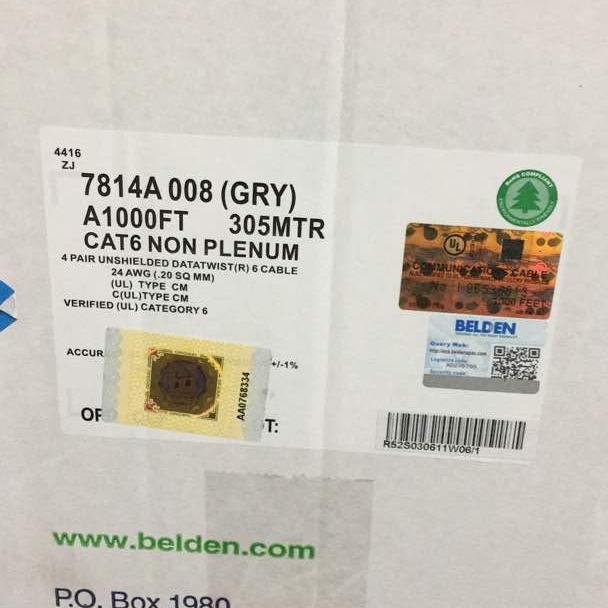 Kabel Belden UTP cat 6 (7814A) original (Lihat Hologram).